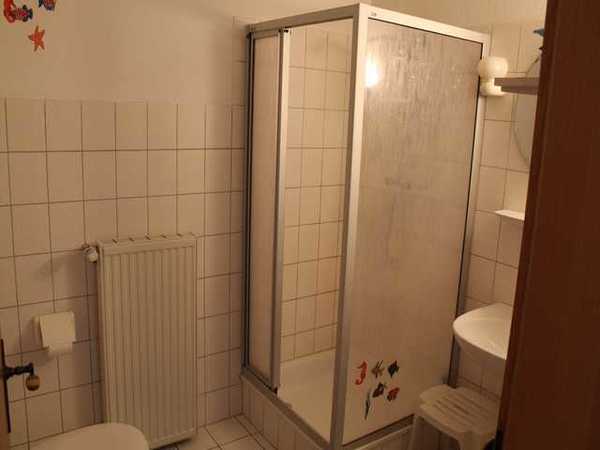 Die Ferienwohnung 1 hat eine Wohnfläche von ca. 65 m² mit zwei separaten Schlafzimmern, einem Doppelzimmer und einem weiterem Zimmer mit 3 Betten (ein Hochbett und ein normales Bett). Badezimmer mit Dusche und WC. Komplett eingerichtete Küchenzeile mit Kaffeemaschine, Wasserkocher, Mikrowelle, Mixer, Toaster, Eierkocher, Herd & Backofen, Kühlschrank und sonstigem Hausrat. Das Wohnzimmer ist mit einem Farbfernseher (Sat-Anlage) und Radiogerät ausgestattet. Für die kleinen Gäste steht ein Reisebettchen oder Kinderbett einschließlich Bettwäsche sowie ein Hochstuhl, Spielzeug und ein Spielplatz zur Verfügung. Hunde sind bei uns auch gern gesehene Gäste.