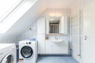 Es gibt zwei Schlafzimmer, eins verfügt über ein Doppelbett 2,00 m x 2,00 m und in dem zweiten Schlafzimmer steht ein Doppelbett (1,80 m x 2,00 m) und ein Schlafsofa (1,40 m x 2,00 m). Im großen Badezimmer stehen Ihnen eine Dusche mit einem ca. 4 cm hohem Einstieg, ein Waschtisch mit ausreichend Schränke, eine Toilette, eine Waschmaschine, Wäschetrockner (gegen einen kleinen Aufpreis von 3) und ein Haartrockner zur Verfügung. Im Garten befindet sich für die Gäste ein Blockhaus, die hier gemütliche Stunden verbringen können. Für Ihre mitgebrachten Fahrräder steht Ihnen eine abschließbarer Raum und eine Carport zur Verfügung.