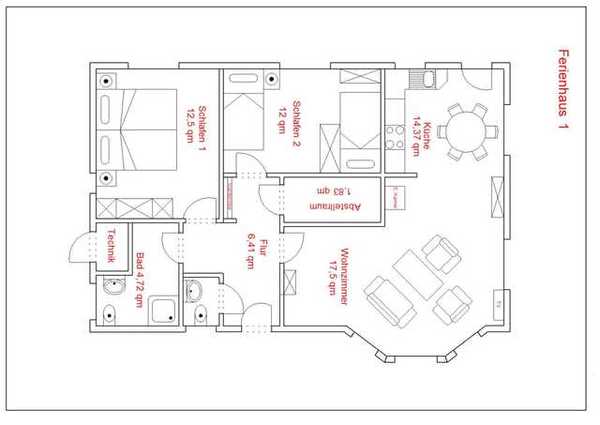 Bungalow, Ferienhaus, Ferienhaus 3 Räume
