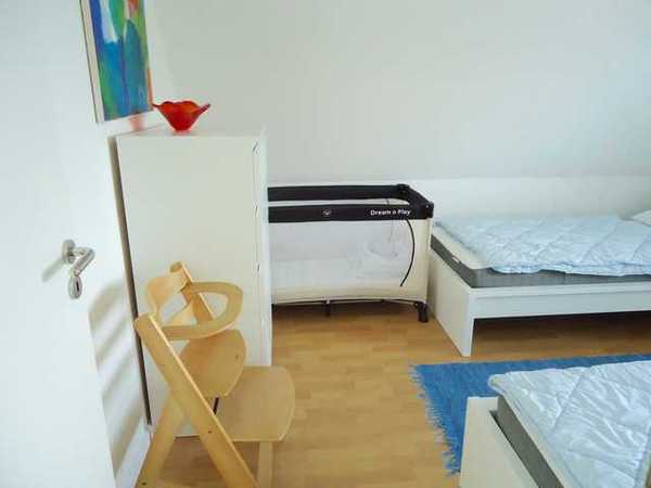 lm ersten Schlafzimmer finden Sie ein fußfreies Doppelbett 180 x 200 cm und einen Kleiderschrank. Im zweiten Schlafzimmer 2 fußfreie Einzelbetten mit je 90 x 200 cm, eine große Schubladenkommode und ein Kinderreisebett. Die Schlafzimmer verfügen über Verdunklungsrollos. Im Bad mit großem Fenster befindet sich eine Dusche mit niedrigem Einstieg und Glaskabine.