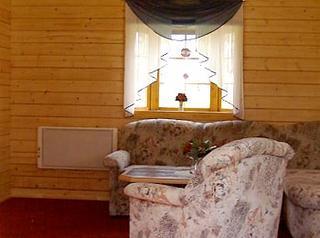 Das Holzblockhaus hat eine Größe von 33 m² und verfügt über ein separates Schlafzimmer, einem kombinierten Wohn- Schlafzimmer mit SAT/TV, Radio, einem Bad mit Dusche/WC, Fön und einer Küchenzeile mit Kühlschrank, Wasserkocher, Kaffeemaschine und Toaster.