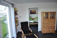 Helle Ferienwohnung in grüner Lage Die Wohnung bietet Ihren Gästen ein Schlafzimmer mit einem komfortablen Doppelbett (getrennte Matratzen) und ein großes Wohnzimmer mit einer bequemen Schlafcouch. Hier finden zwei weitere Personen bequem Platz. Die Ferienwohnung ist stilvoll eingerichtet. Für bunte Unterhaltung sorgen ein LED-TV und eine Stereoanlage. In der offenen Küche befindet sich eine komplett eingerichtete Einbauküche mit Backofen, Ceranfeld, Kühlschrank inklusive Gefrierfach, Geschirrspüler, Mikrowelle, Wasserkocher, Kaffeemaschine und Toaster. Das Bad mit Tageslicht verfügt über eine Dusche, eine große Spiegelfront, einen Föhn und mehrere Abstellmöglichkeiten. In der kompletten Wohnung ist eine Fußbodenheizung installiert und von jedem Zimmer aus können Sie nach außen auf die Terrasse gelangen. Starten Sie Ihren Tag mit frischen Brötchen und den Klängen der umliegenden Natur. Zu der 60 qm großen Wohnung gehört ein kostenfreier PKW-Stellplatz in der Tiefgarage. Bitte beachten Sie die Durchfahrtshöhe von max. 1,90 m. Von dort aus gelangen Sie mit dem Fahrstuhl zur Wohnung. Am Eingang des Objekts befinden sich zudem Fahrradständer. Und auch an ungemütlichen Tagen kann man sich optimal erholen, dank der hauseigenen Gemeinschaftssauna. Diese ist über die Terrasse im Erdgeschoss zu erreichen. (Gegen Gebühr / 1,00 Euro je 10 min / 0,50 Euro und 1,00 Euro und 2,00 Euro Münzen) Es handelt sich um eine Nichtraucherwohnung. Es sind keine Haustiere erlaubt. Wäscheset, Kinderreisebett und Kinderhochstuhl können kostenpflichtig zugebucht werden. Sichern Sie sich zusätzlich den Anspruch auf einen der begehrten Strandkörbe nur ein paar Meter entfernt von den rauschenden Wellen der Ostsee (Anfang Mai - Ende August) und buchen Sie jetzt zu besonderen Konditionen (12,00 Euro pro Tag oder 75,00 Euro pro Woche.) Das kostenfreie WLAN in der Unterkunft ist ausschließlich für die Verwendung von Social Media und den Austausch von Bildern mit Familie und Freunden gedacht. Die Nutzung zum Streamen von Filmen ist nicht vorgesehen.