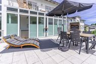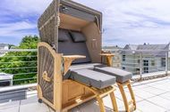Penthouse-Appartement für bis zu 3 Personen, ca. 85 m² Wfl. im II.OG, große Sonnenterrasse (ca. 65 m²) möbliert + Strandkorb, 1 sep. Schlafzimmer mit Doppelbett, eine weitere Einzelschlafcouch im großen Wohnbereich. Ein Haustier ist erlaubt. WLAN; Flachbild-TV, Bluetooth-Player uvm.