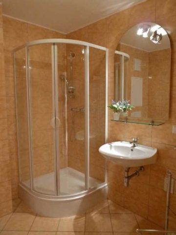 - gefließtes Bad mit Runddusche, WC, Fön und Waschtisch