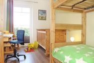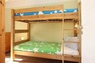 Das Gäste-/ Kinderzimmer ist kinderfreundlich gestaltet und bietet ein Kinder/Babybett für kleine Gäste sowie ein Etagenbett, in dem auch Erwachsene ausreichend Platz finden. Auch ein schöner Schreibtisch hat hier einen Platz gefunden.