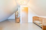 Alle Zimmer, bis auf das eine Gäste-/ Kinderzimmer im Dachgeschoss, sind mit einer Außenjalousie ausgestattet. So können diese sehr gut abgedunkelt werden. Dieses Zimmer im Dachgeschoss hat am Fenster eine Jalousie.