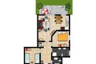Im Schlafzimmer finden Sie ein breites Doppelbett sowie einen geräumigen Schrank vor, das Gäste-/ Kinderzimmer ist mit zwei Einzelbetten und ebenfalls einem Kleiderschrank ausgestattet.