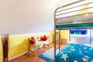 Im Dachgeschoss, der 2. Wohnebene sind die beiden Kinder-/ Gästezimmer eingerichtet. Eines davon ist mit einem Etagenbett und Kommode eingerichtet, das etwas größere Zimmer bietet 2 Einzelbetten, einen Kleiderschrank, Kommode und einen weiteren Fernseher. Hier ist auch Platz, um ein Reisebettchen aufzubauen.