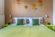 Das farblich abgestimmte Schlafzimmer bietet ein Doppelbett (180x200cm) sowie einen geräumigen Kleiderschrank. Aus dem Bett können Sie auch in diesem Zimmer gemütlich auf dem Flatscreen-TV fernsehen.