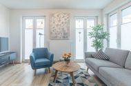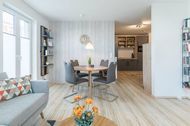 Die 3-Zimmer-Ferienunterkunft mit 56 qm Wohnfläche im EG ist komfortabel und modern für bis zu 4 Gäste eingerichtet. Die bodentiefen Fenster sorgen für viel Tageslicht. Hochwertige Möbel, die Wohnküche und die angeschlossene Essecke sorgen für Wohlergehen in der Urlaubszeit.