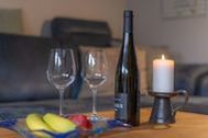 Sie betreten diese freundliche Ferienwohnung im Erdgeschoss durch eine geräumige Diele. Rechts gelegen das helle Fenster-Duschbad mit Waschmaschine. Eine separate Küche bietet Ihnen eine komplette Grundausstattung. Geradeaus geht es in den mediterran sonnig gestalteten Wohn-/Essbereich mit Flachbild-TV, DVD-Recorder und einer Auswahl an DVDs, Büchern und Spielen. Der Schlafraum hat Teppichboden und bietet ein bequemes Doppelbett in den Maßen 160x200 mit Kleiderschrank zusätzlichem Fernseher. Eine weitere Schlafgelegenheit für zwei Personen haben Sie auf dem ausziehbaren Sofa im Wohnzimmer. Entspannen Sie in der Ferienwohnung auf der Südterrasse mit Grillmöglichkeit. Die Terrasse und das Grundstück sind eingegrünt und nicht einsehbar.